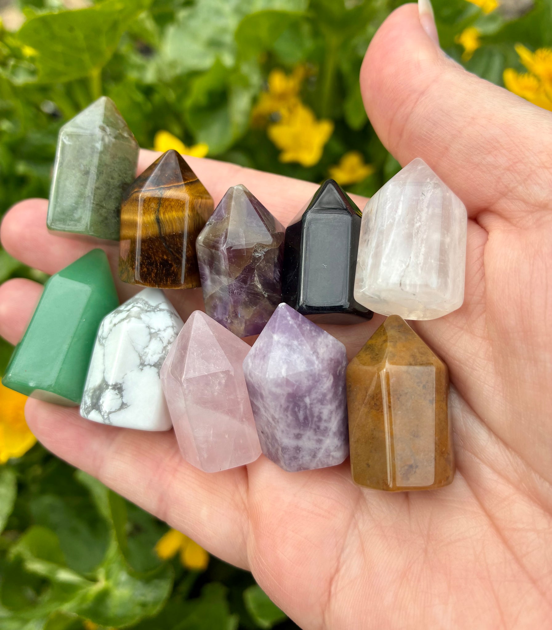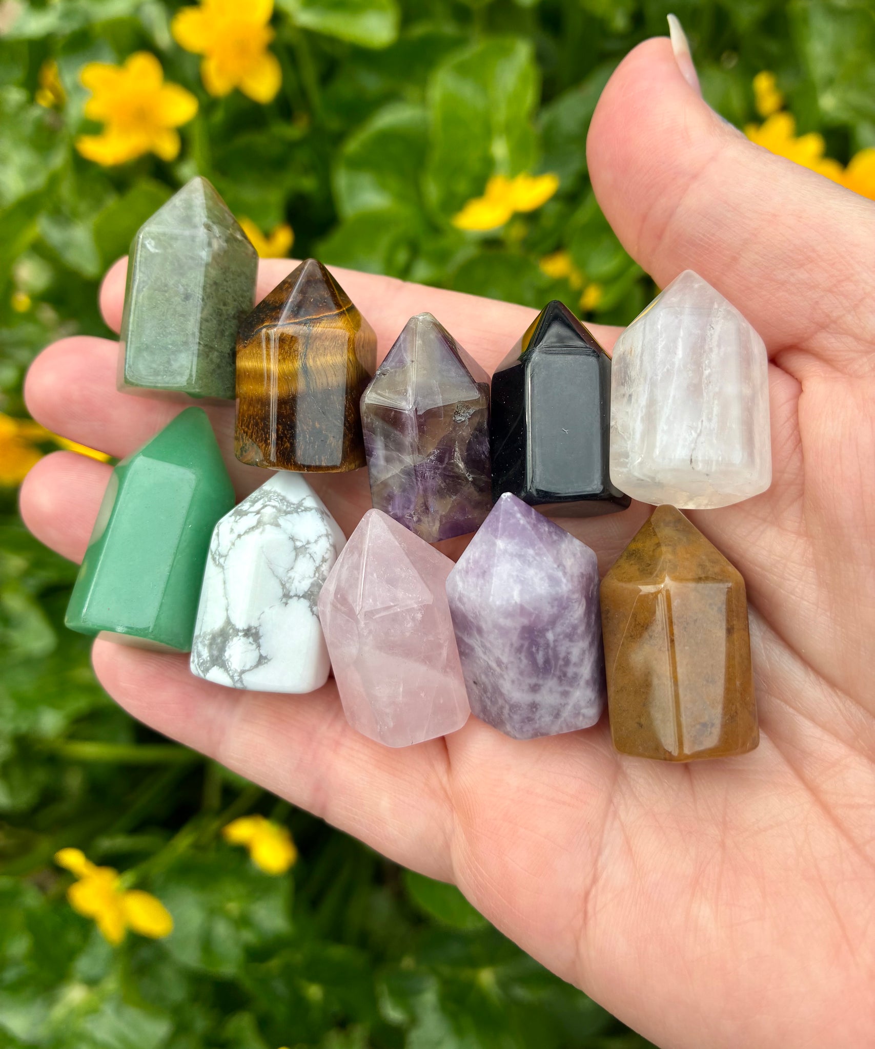 Mini sized towers/points. All around 2.7cm. Shades and sizes will vary.