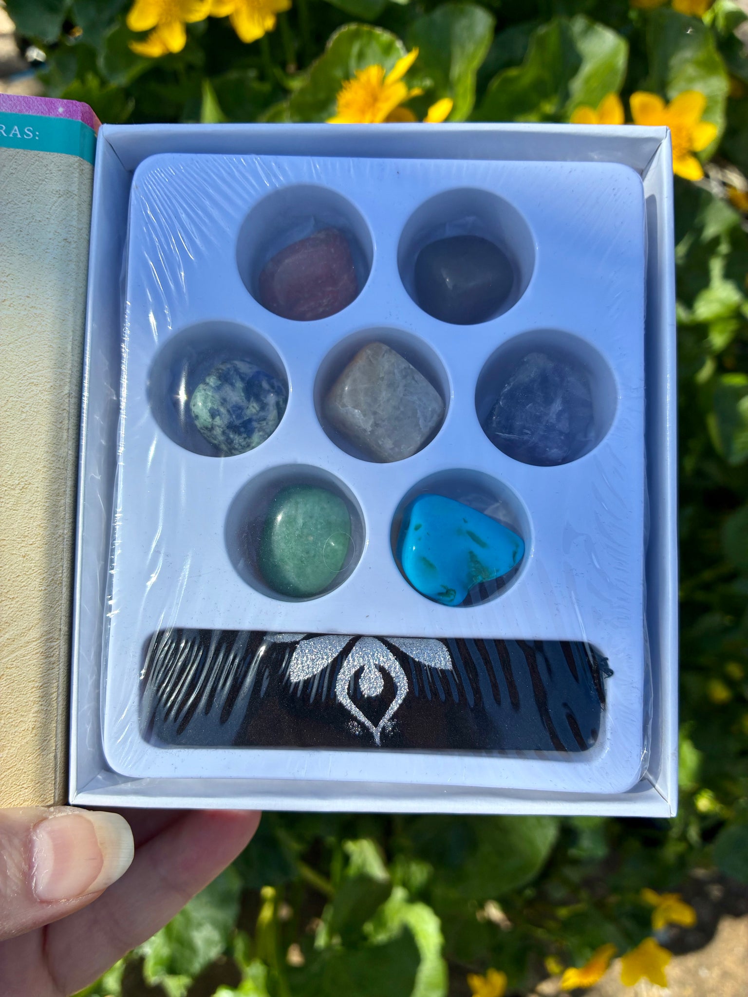 Tumblestones representing the 7 chakras can be found in this gift box, along with a velvet style drawstring bag, an energy centres chart and information about the crystals.